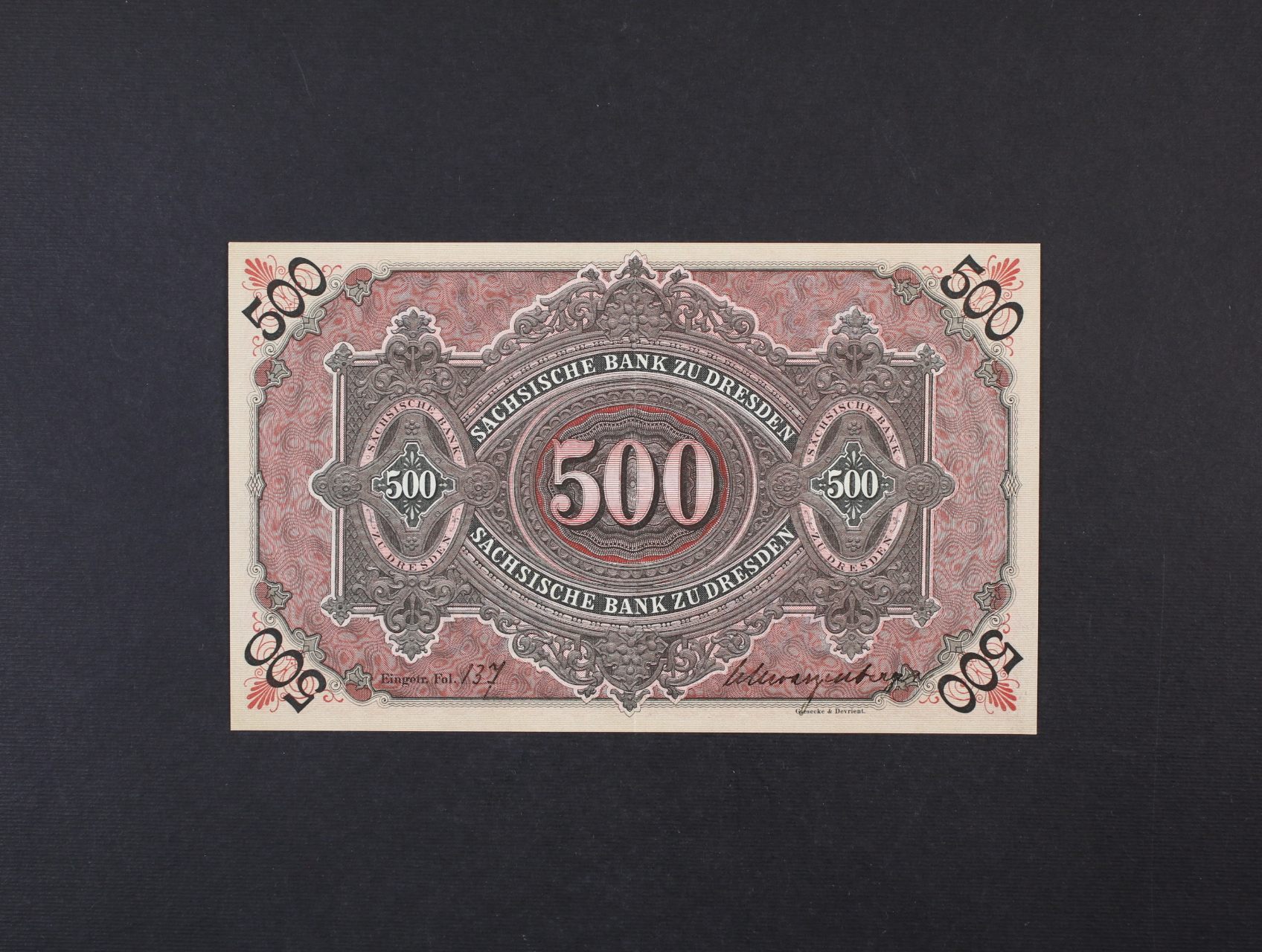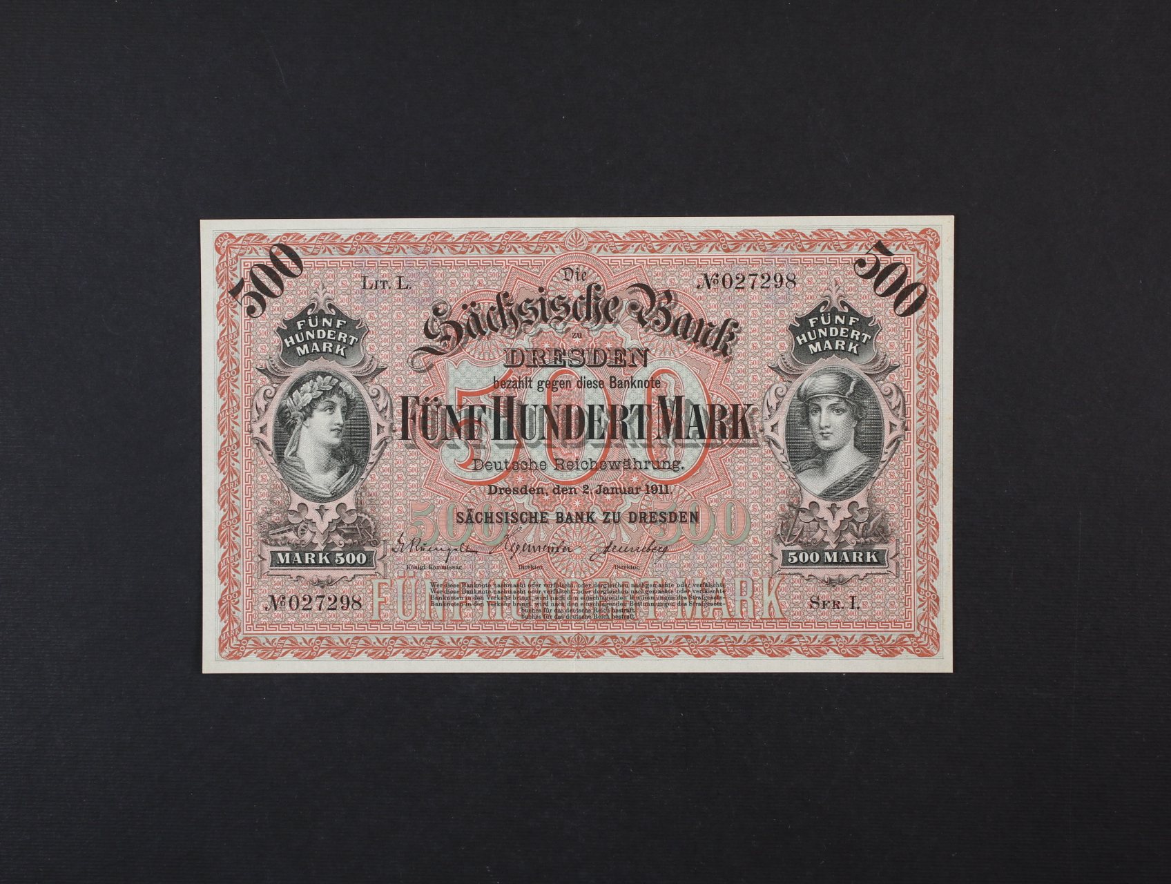 • Sasko, 500 Mark 2.1.1911 série I, na rubu ručně série a podpis, Ro. 747, Pi. S953b, Grab. SAX-9a