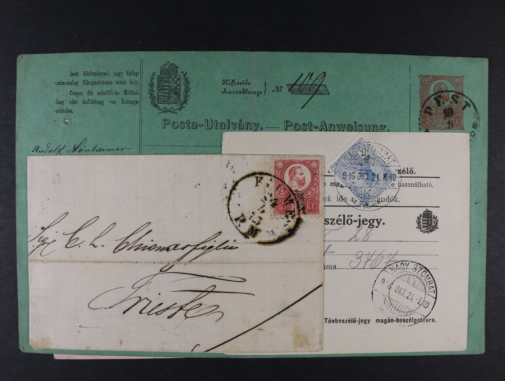 sestava 4 ks různých kompl. pošt. formulářů z let 1871 - 1916 2x použitý, 2x nepoužitý + skl. dopis