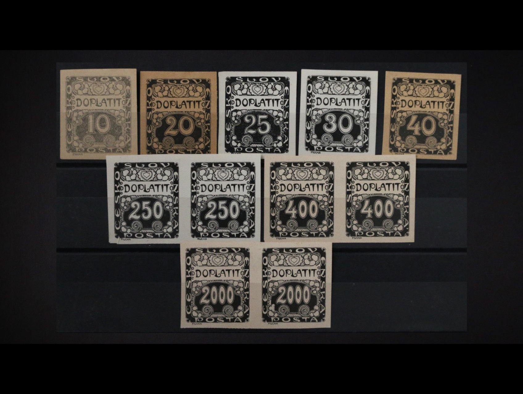 • sestava  5 ks a tří dvoupásek ZT dopl. zn., ornamentální kresba v černé barve, zajímavé