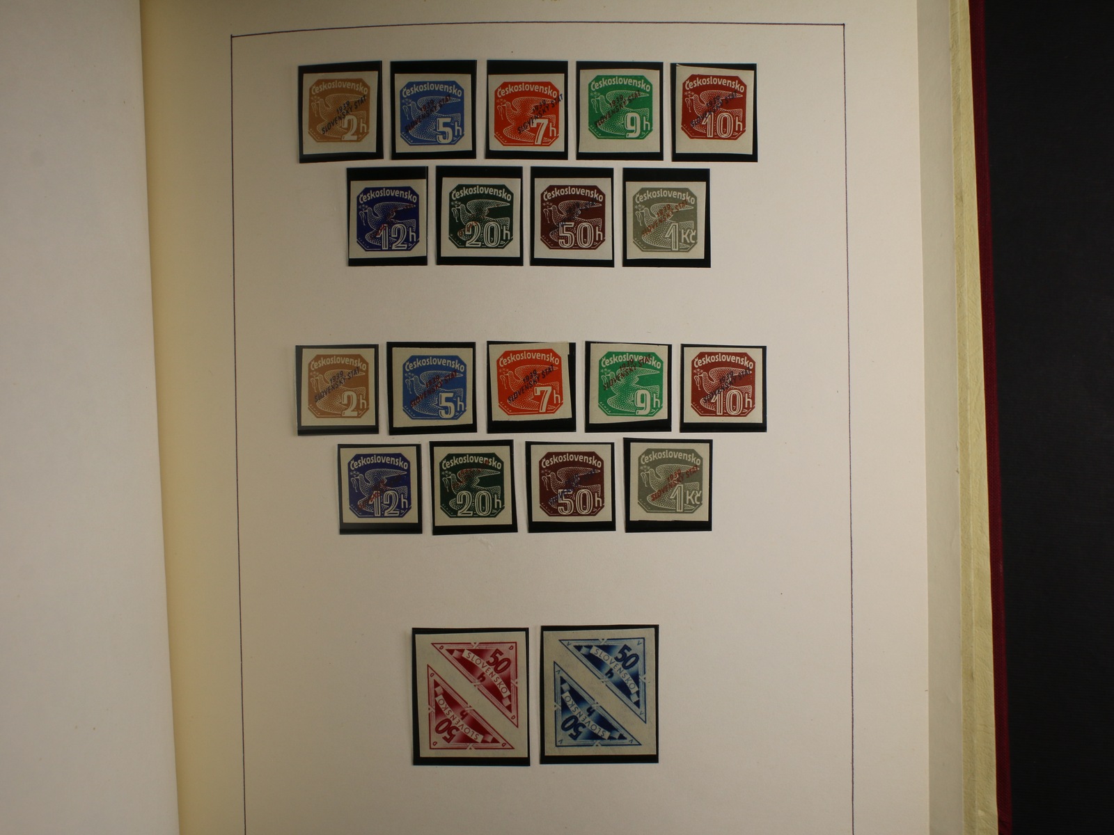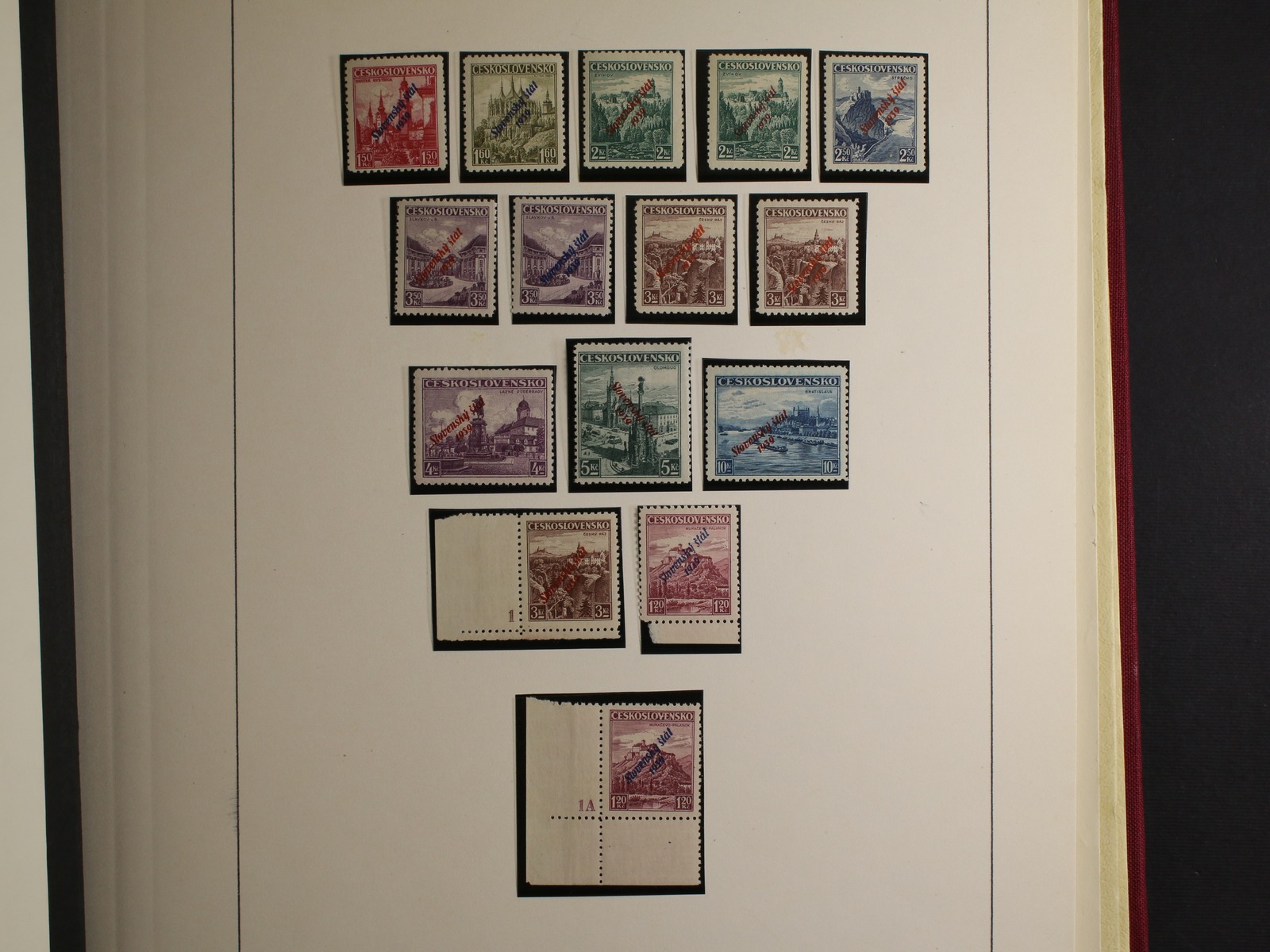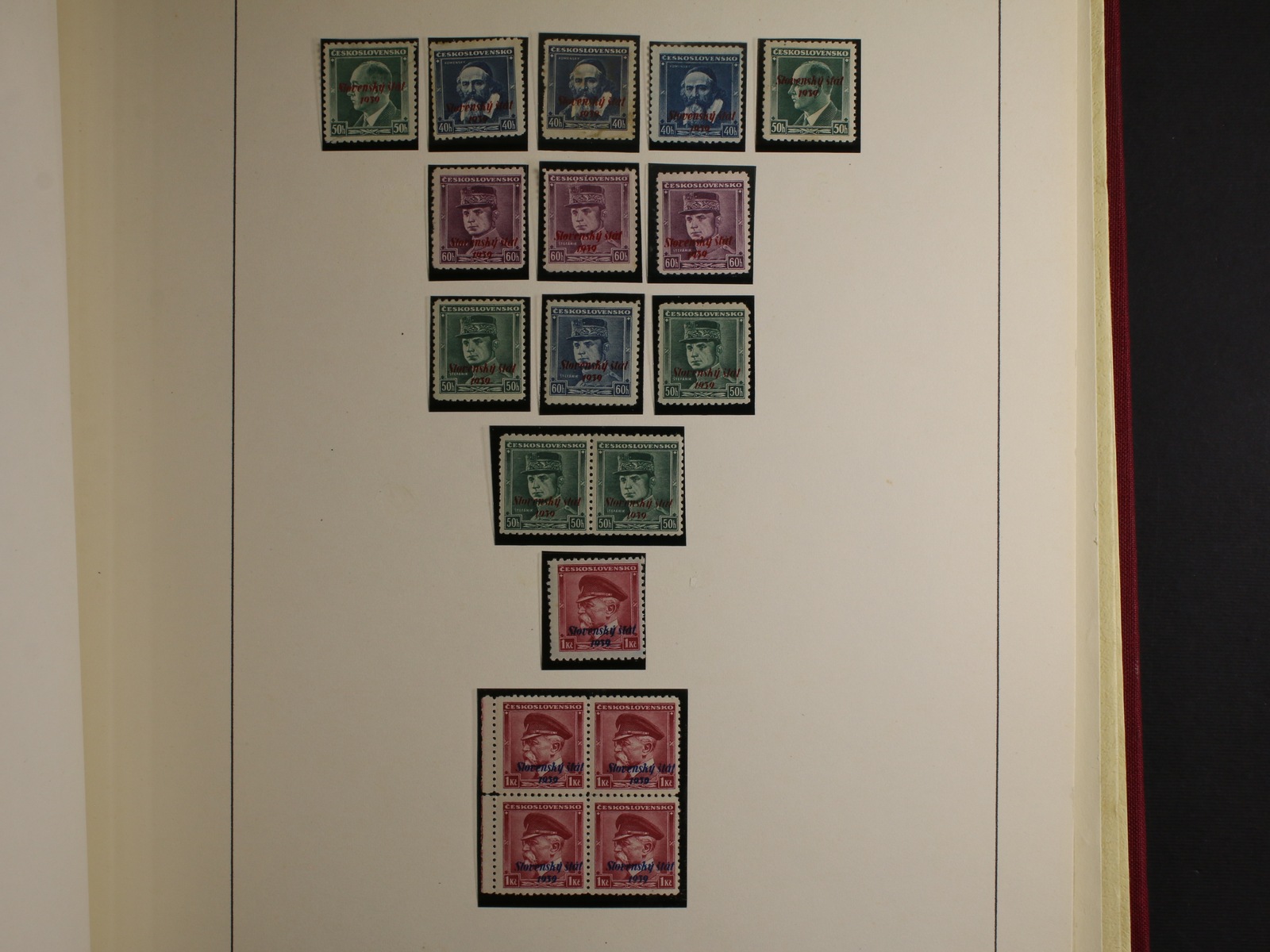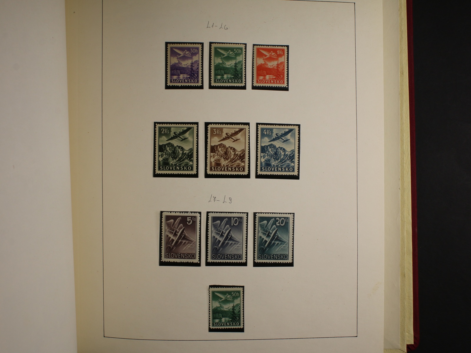 Slovensko 1939 - 45 - téměř kompl. mírně specializovaná sbírka zn. a celistvostí, obsahující mj. zn. č. 20 - 22 (zk. Gilbert, Synek), kat. cena cca 750 EUR, uloženo na listech Schaubek v Hawidkách v červených pérových deskách, zajímavé, k prohlédnutí