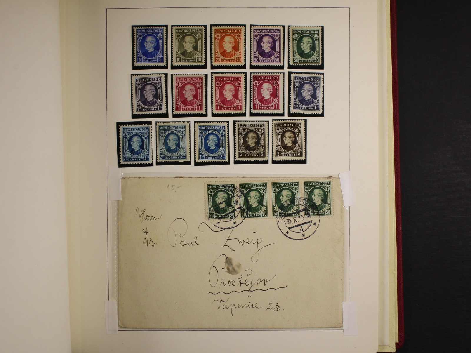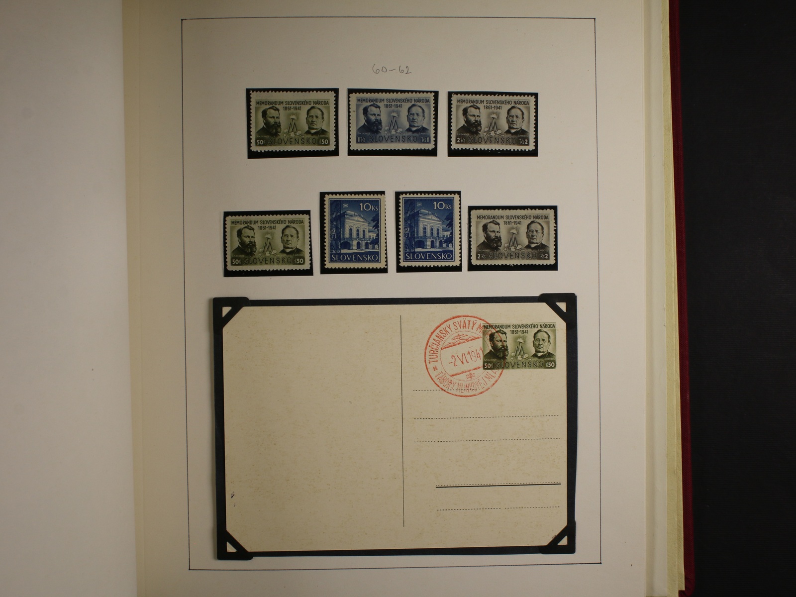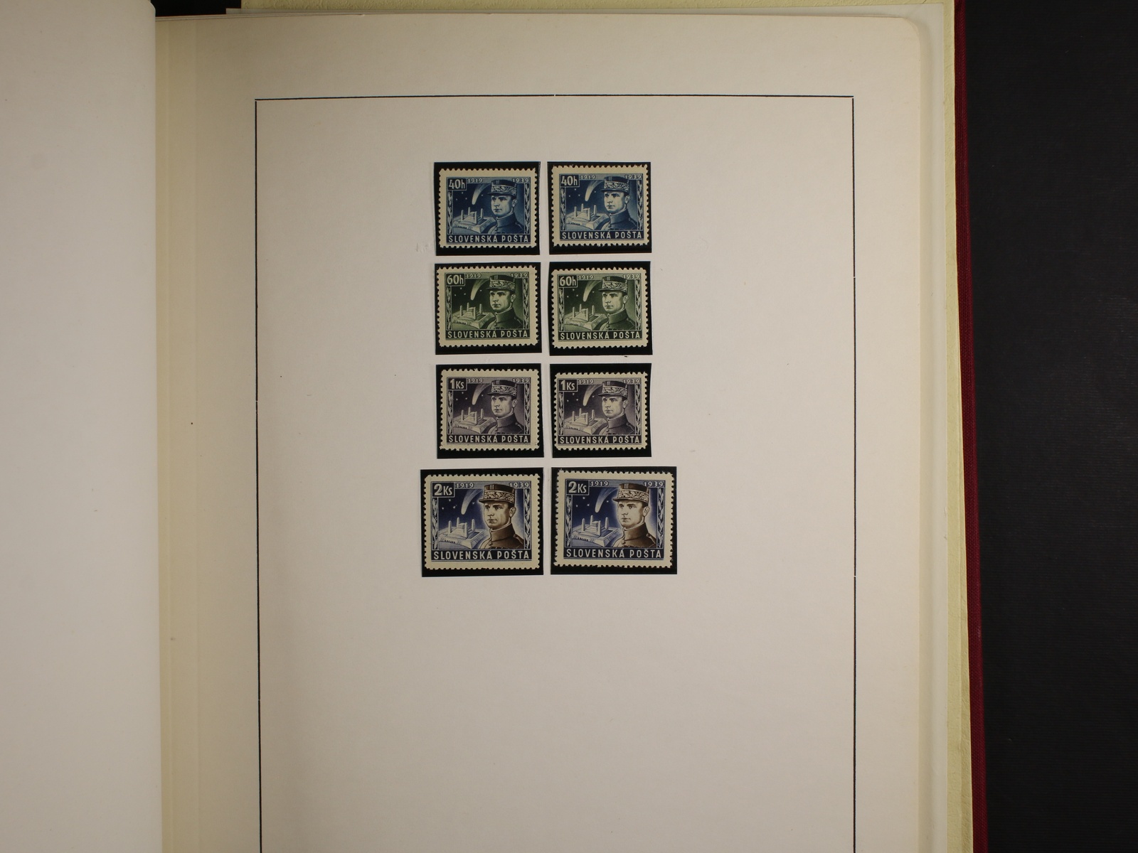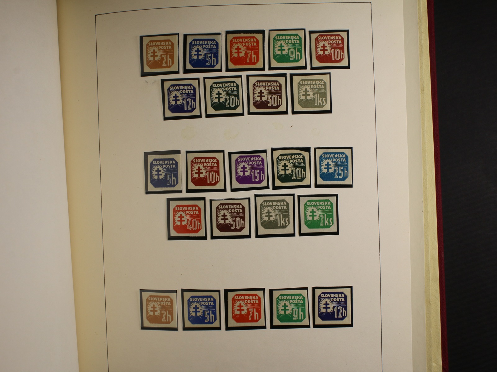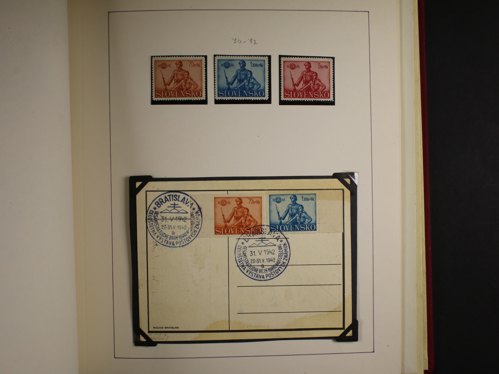 Slovensko 1939 - 45 - téměř kompl. mírně specializovaná sbírka zn. a celistvostí, obsahující mj. zn. č. 20 - 22 (zk. Gilbert, Synek), kat. cena cca 750 EUR, uloženo na listech Schaubek v Hawidkách v červených pérových deskách, zajímavé, k prohlédnutí