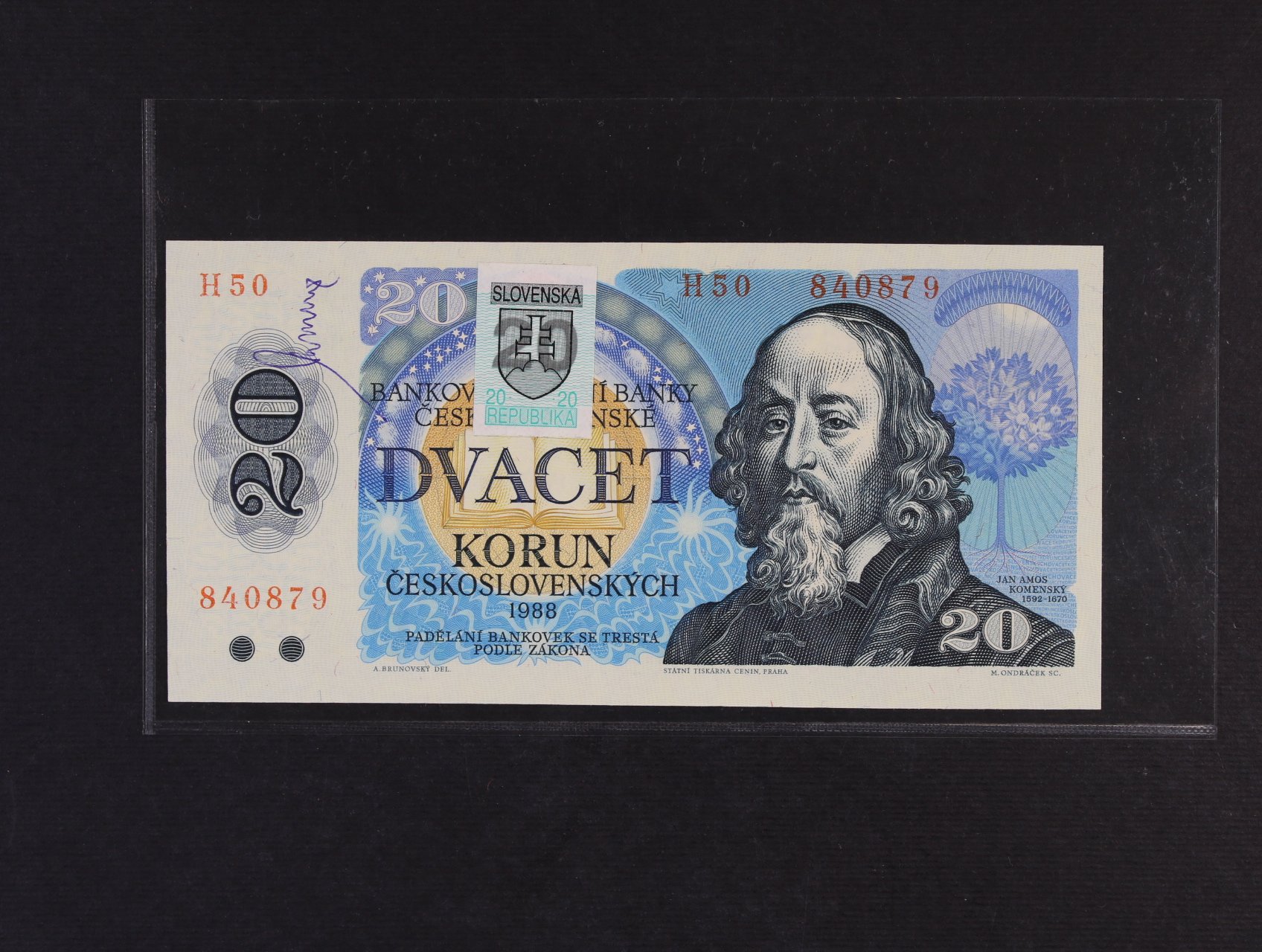 • Slovensko, 20 Sk/Kčs 1988/93 série H 50 kolkovaná s vlastnoručním podpisem Guvernéra Mathese