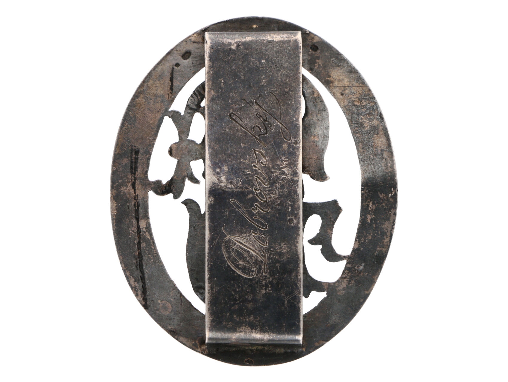 Sokol - přezka na opasek, na vnitřní straně vyryto Dobrovský a ČS punc Ag pro ryzost 750/1000 z let 1921-1928, 22,59 g.