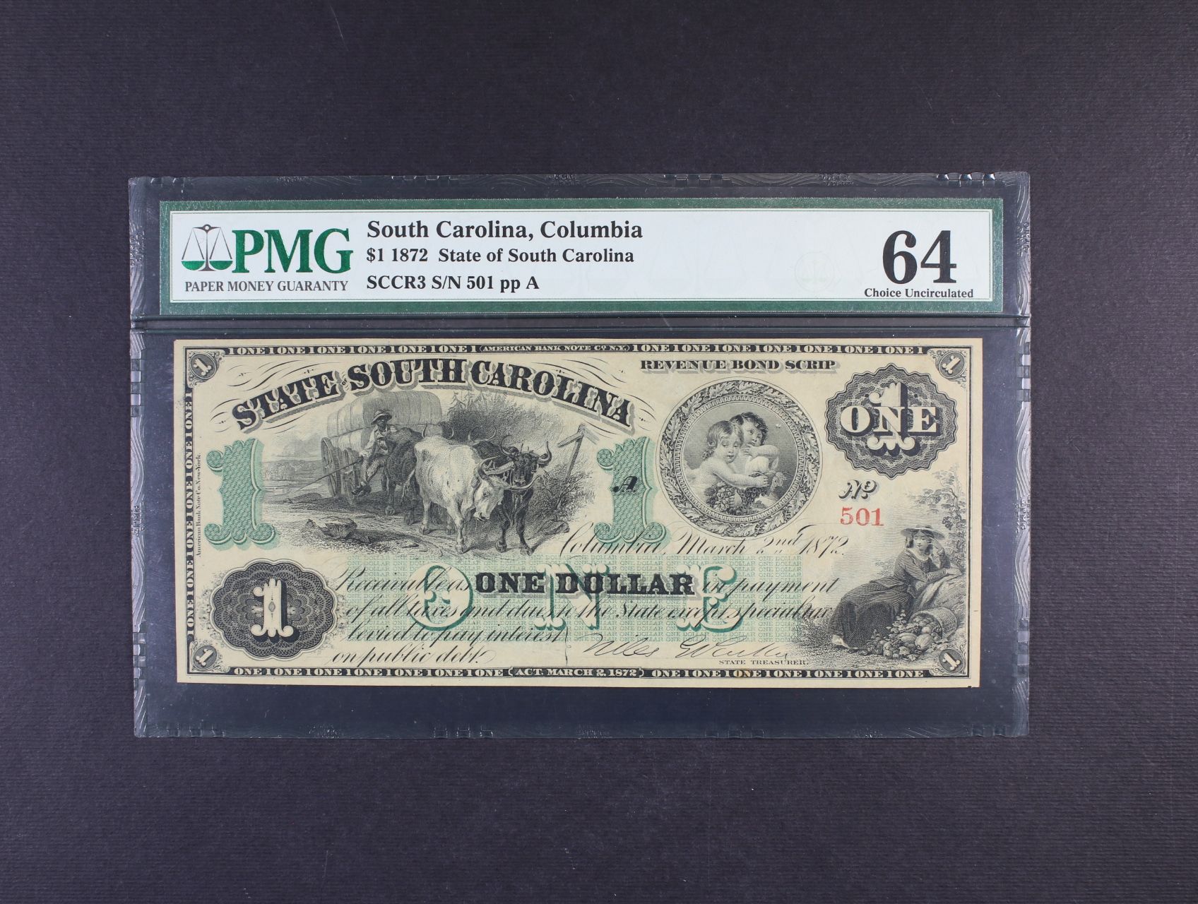 • South Carolina, Columbia, 1 Dollar 1872, PMG 64