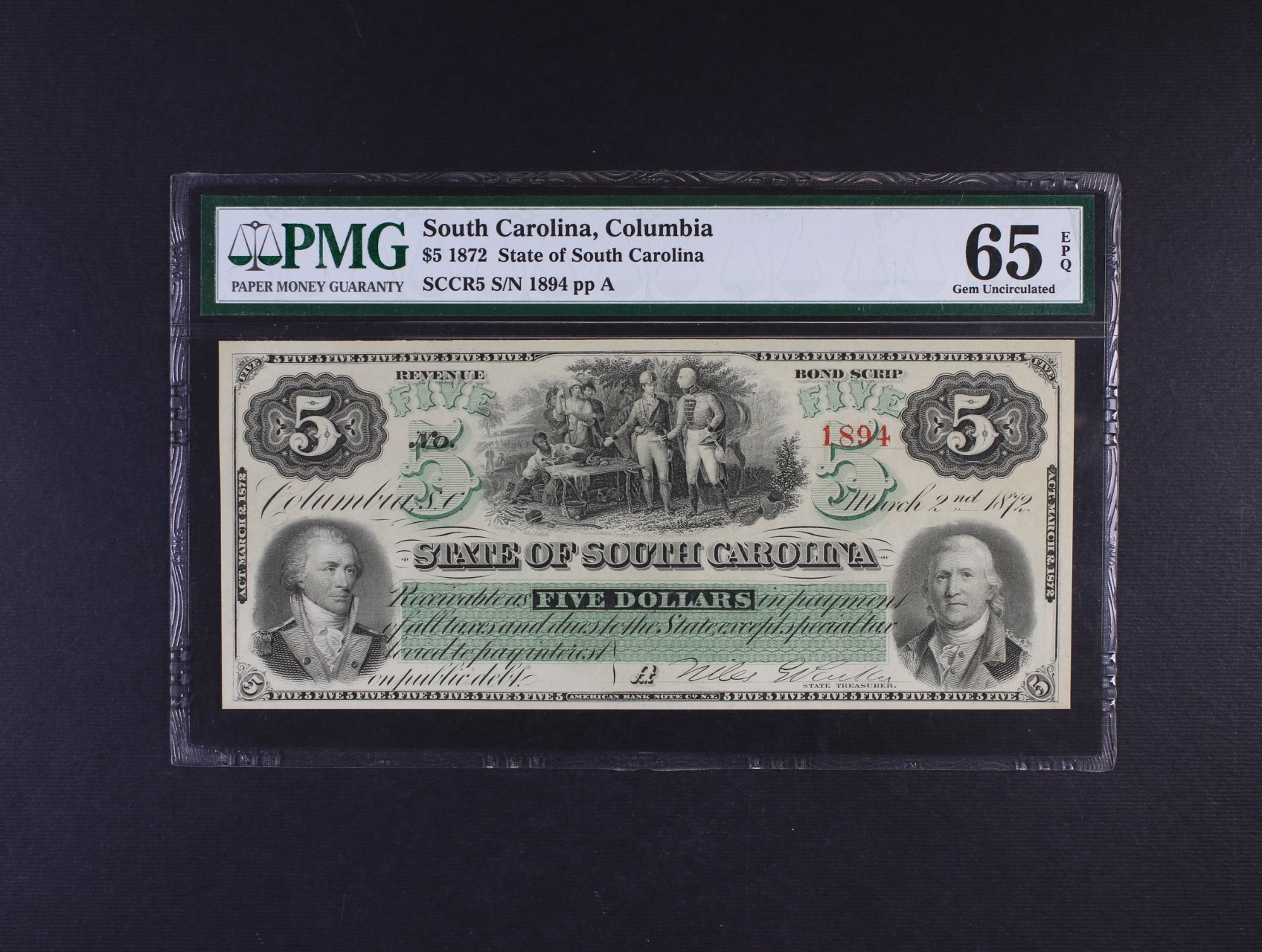 South Carolina, Columbia, 5 Dollars 1872, PMG 65