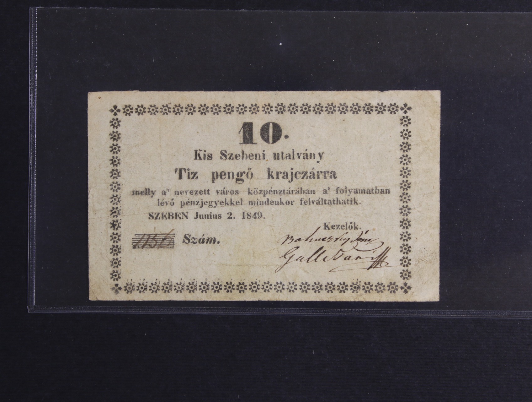 • Szeben (Sabinov),  10 pengö krajczárra 2.6.1849, ADAM.- KSZ-1.2