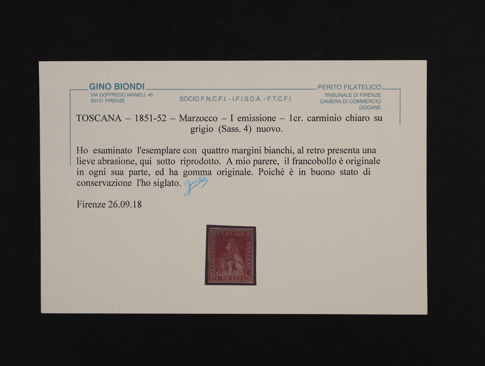 • Toskánsko - zn. Sas. č. 4, zk. a atest Biondi, kat. Sas. 20000 EUR