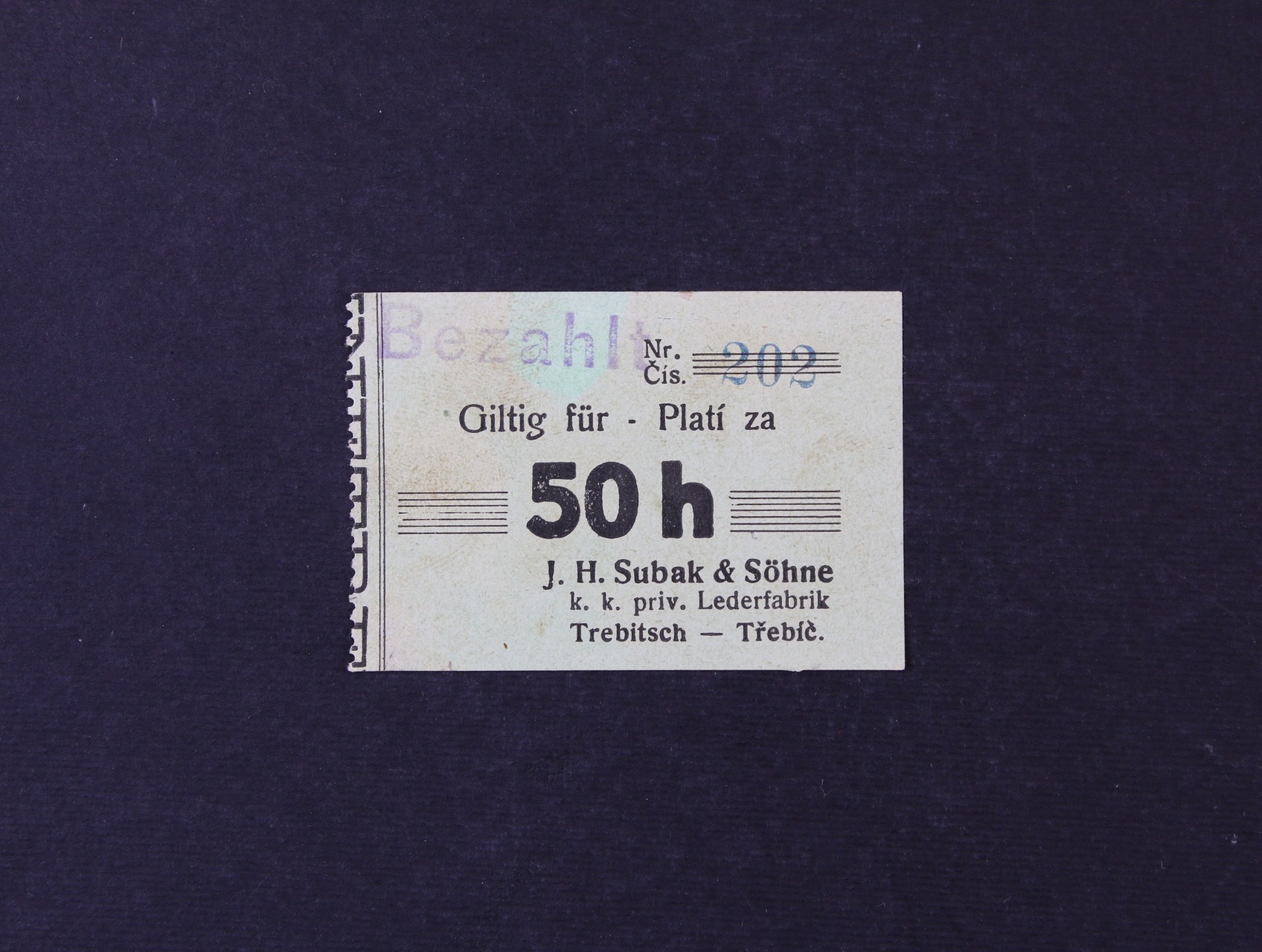 • Třebíč, 50 h b.l. J.H.Subak & Söhne, s raz. Bezahlt, H.H. 223.6.1.2b