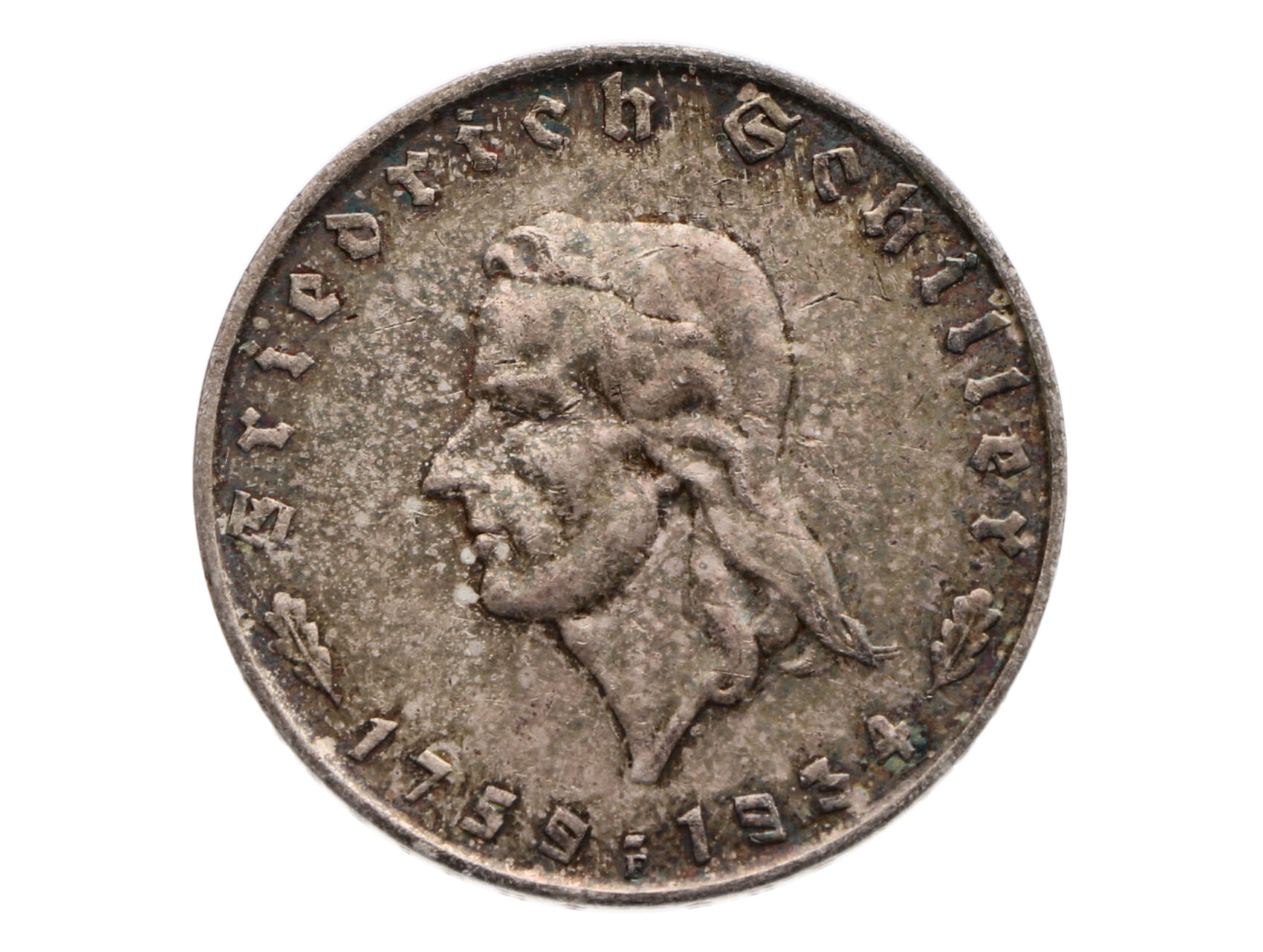 • Třetí říše 1933-1945 - 2 Marka 1934 F, Friedrich Schiller, K.M. 84