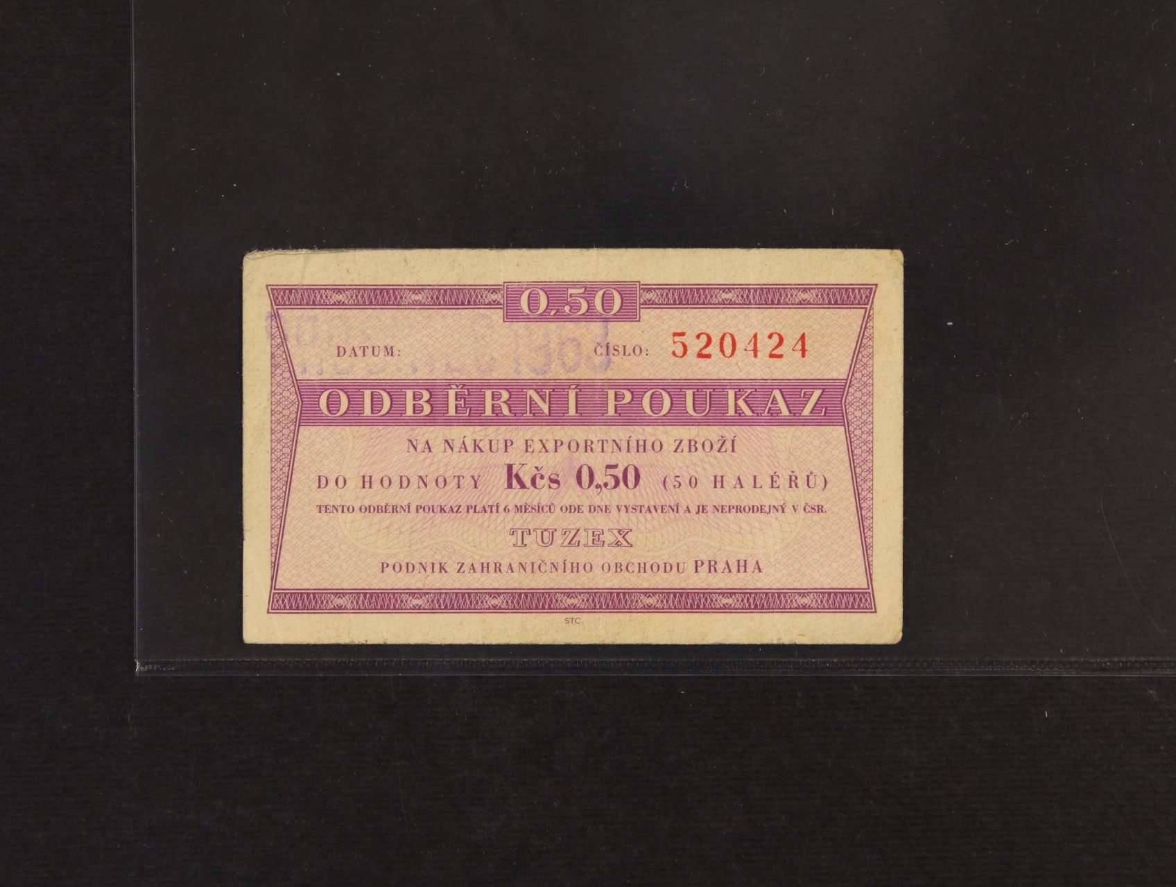 • Tuzex, 0,50 TKčs bez data s raz. PROSINEC 1963, K.Š.K. 25/IV/1a číslovač typ