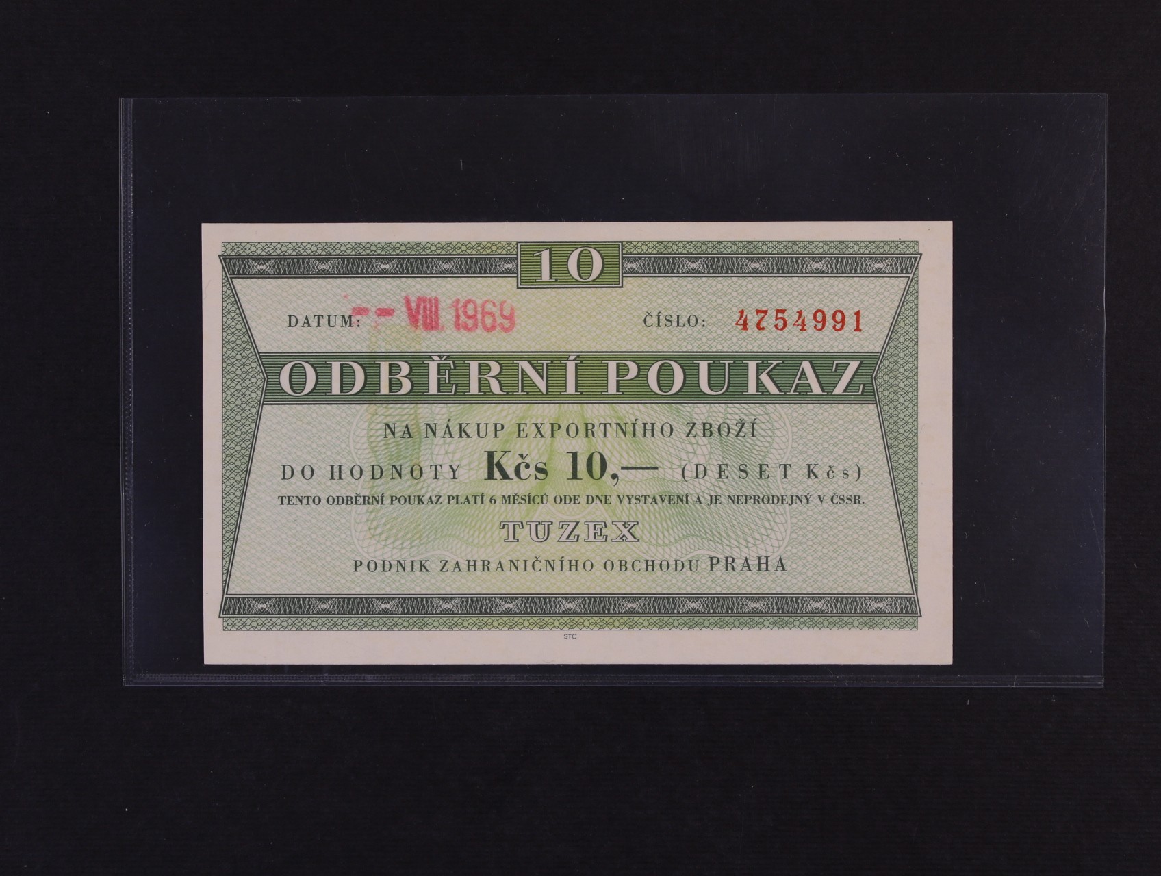 Tuzex, 10 TKčs bez data s raz. VIII.1969 s vodoznakem, K.Š.K. 36/V/3a