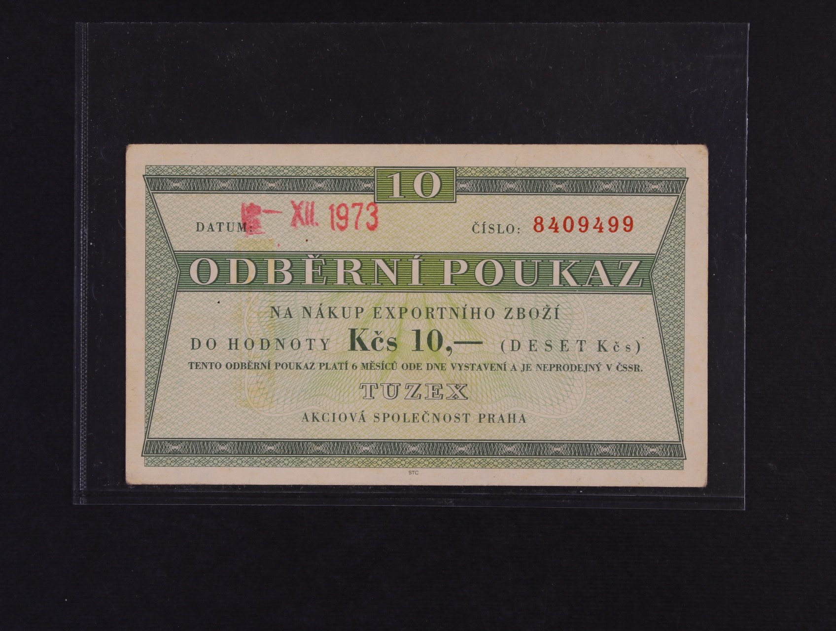 • Tuzex, 10 TKčs bez data s raz.XII. 1973, K.Š.K. 43/VI/a