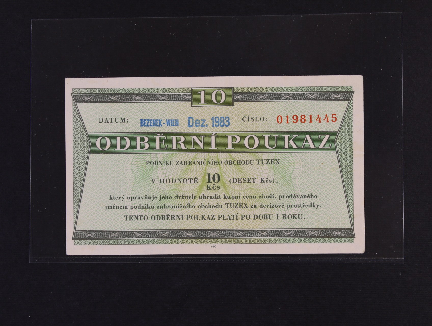 Tuzex, 10 TKčs s raz.zahraničního zástupce BEZENEK - WIEN Dez. 1983, K.Š.K. 58/VIII