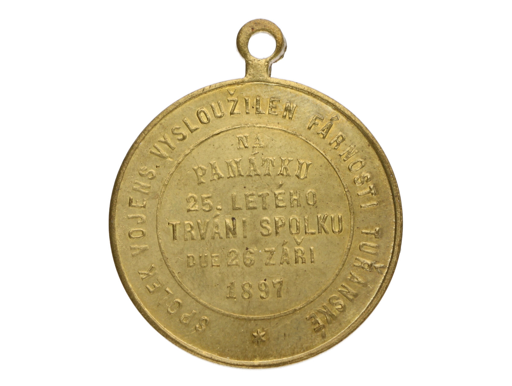 • Veteránské - medaile na památku 25. letého trvání spolku vojenských vysloužilců farnosti Tuřanské, 26.9.1897, mosaz 31 mm