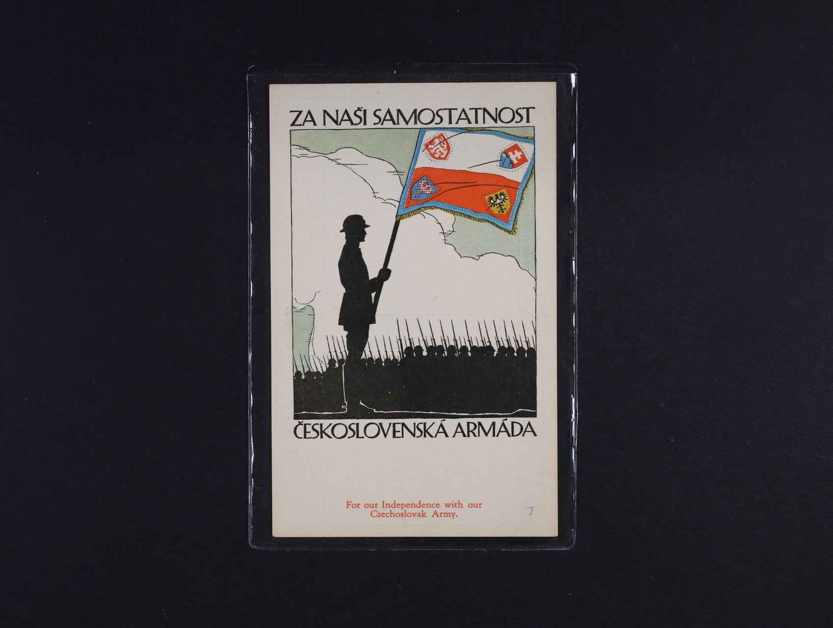 • Vojenské - bar. pohlednice ZA NAŠI SAMOSTATNOST ČESKOSLOVENSKÁ ARMÁDA vydaná v USA pro čs. legionáře, nepoužitá, velmi dobrá kvalita