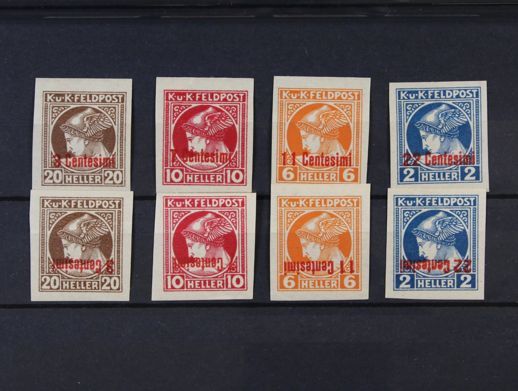Vydání pro Itálii - zn. Mi. č. 20 U - 23 U + 20 U - 23 U - převrácený přetisk