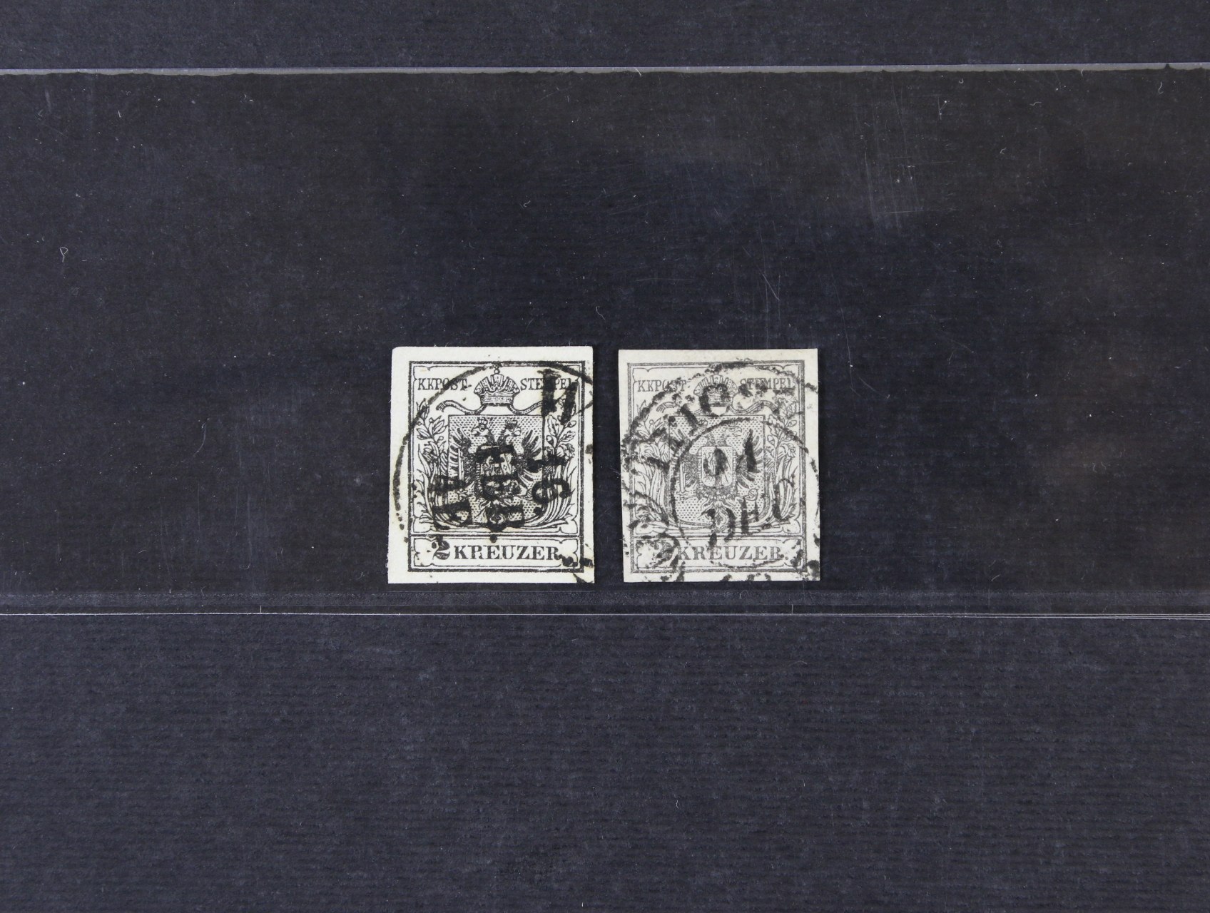 zn. Fe. č. 2 HP, 2x Znak 2Kr I. typ sytě černá "tiefschwarz" a šedá; bezvadné, zkoušeno, kat. 745 EUR