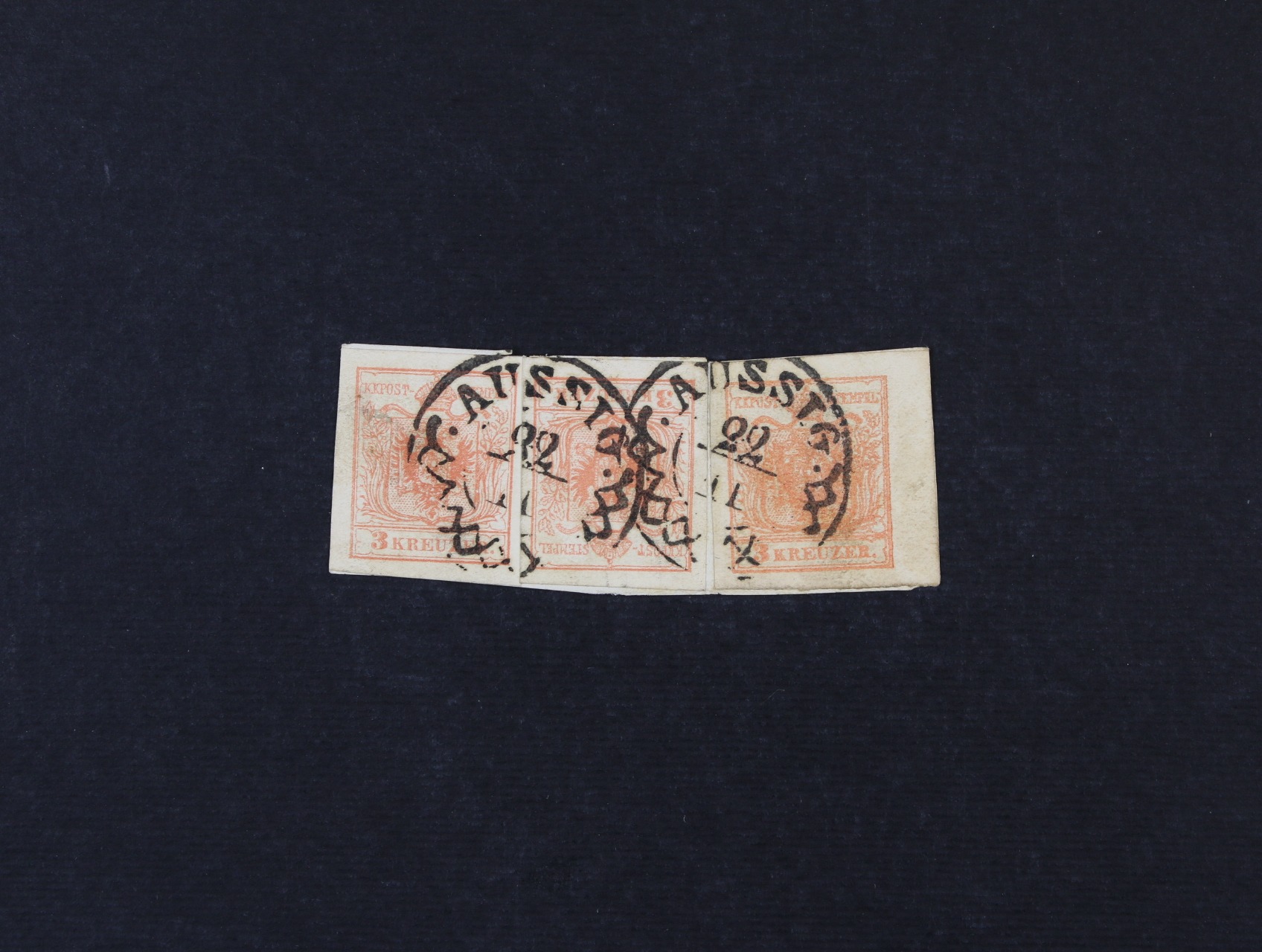 • zn. Fe.č. 3 HP, typ III, 3 ks na malém výstřižku se dvěma kompl. raz. AUSSIG 22.11., pravá zn. s okrajem 5 mm