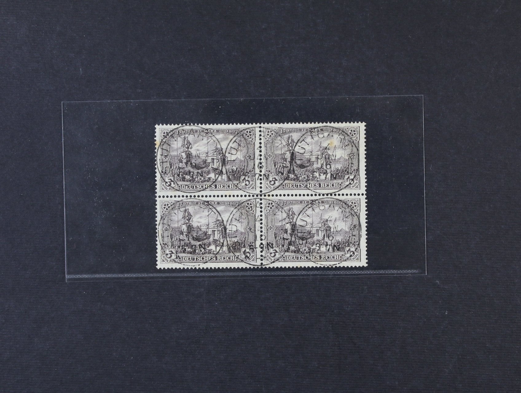 • zn. Mi. č. 96 A I ve čtyřbloku s šesti jednokruh. raz. STUTTGART 4.1.1916, uprostřed ve svislé perforaci natrženo, krásná čitelná raz., zajímavé