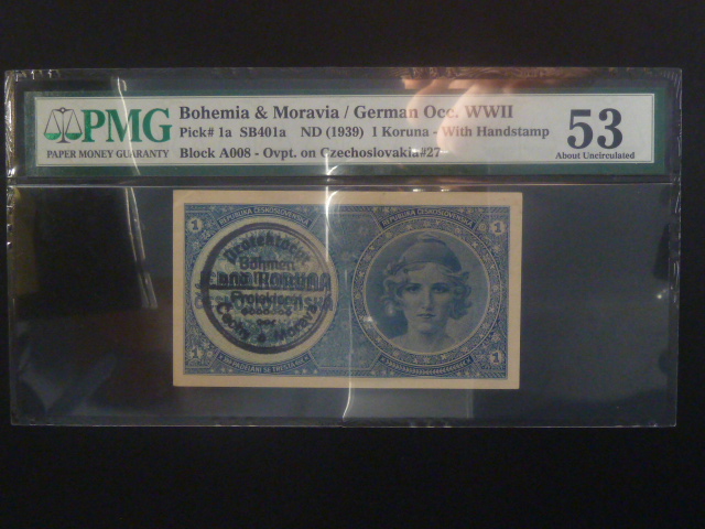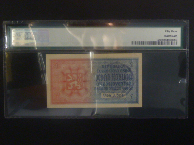 1 K 1938/40 série A 008, ruční přetisk, PMG 53