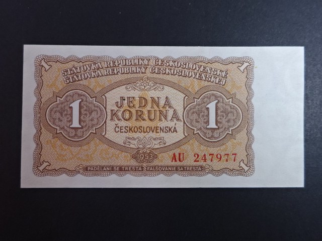 1 Kčs 1953 série AU, tiskárna Goznak Moskva, perf. "3md"