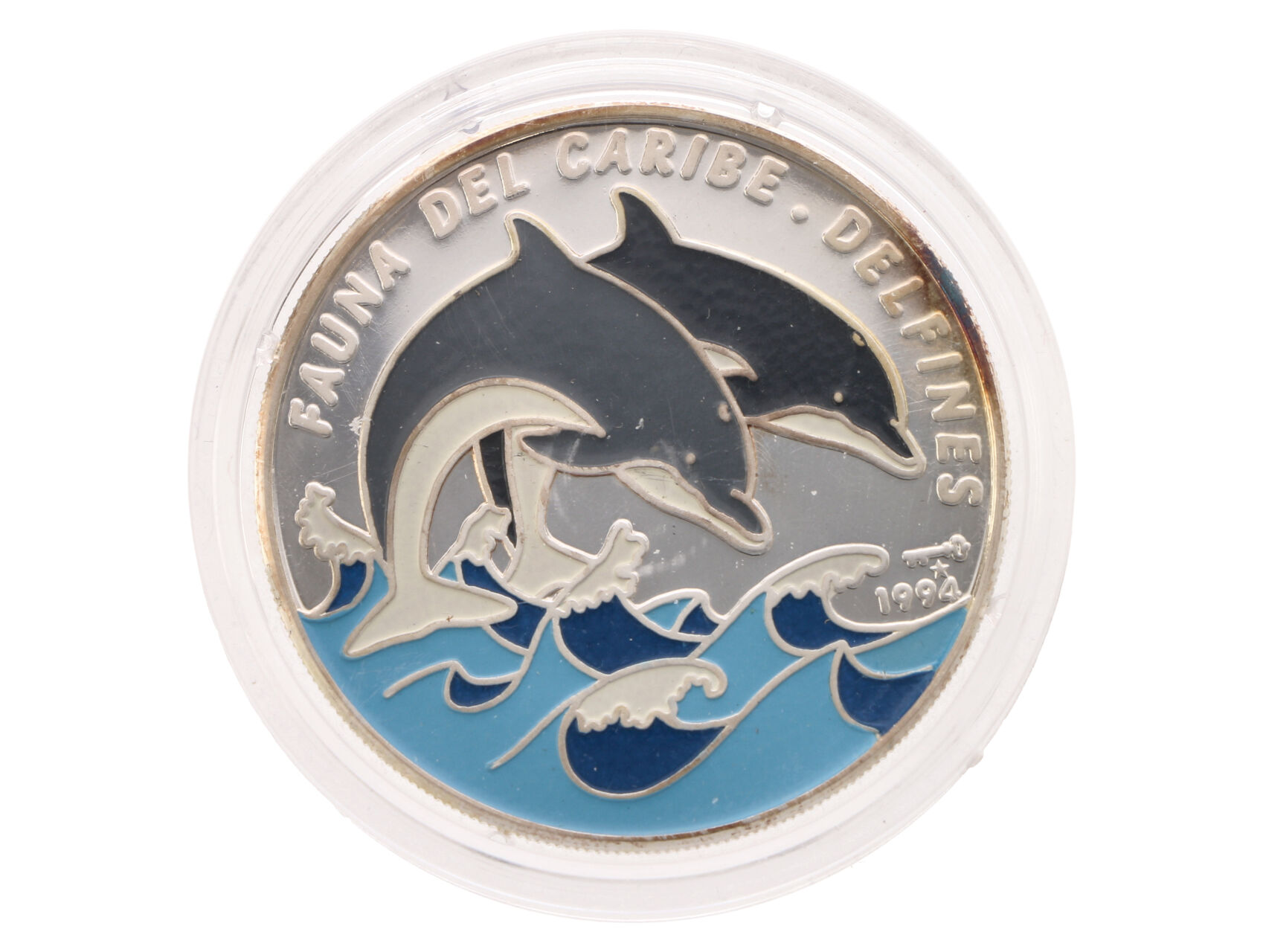 10 Peso 1994 - Karibská fauna - Delfíni, 20g, 0.999 Ag, 10000ks_