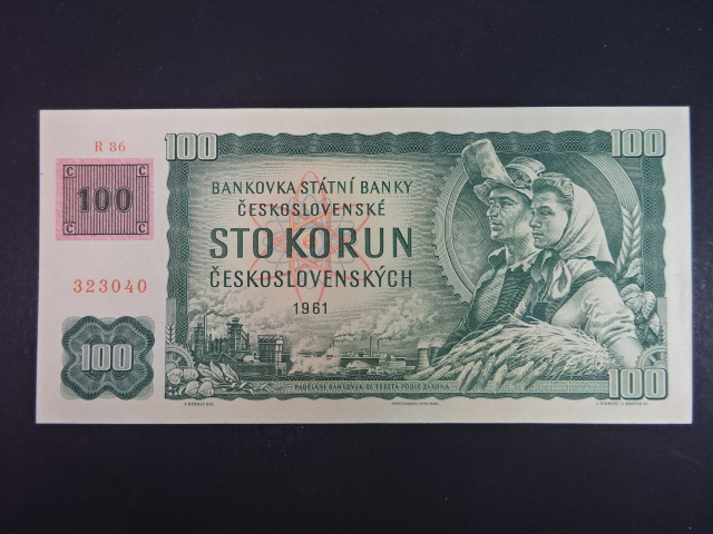 100 Kč 1961/1993 série R 86, kolek, široký číslovač 1c