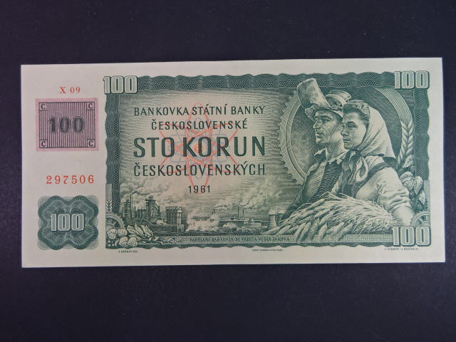100 Kč 1961/1993 série X 09, kolek, I.vydání, číslovač 1c, vodoznak 13