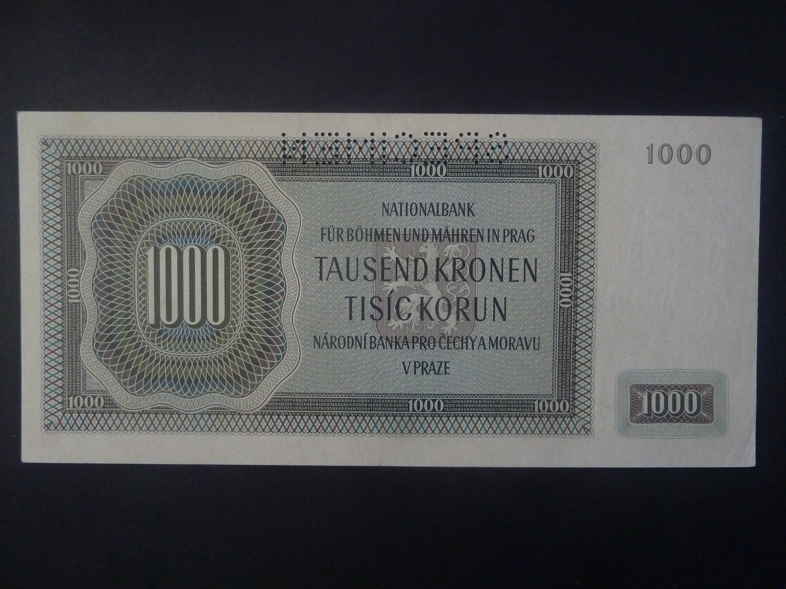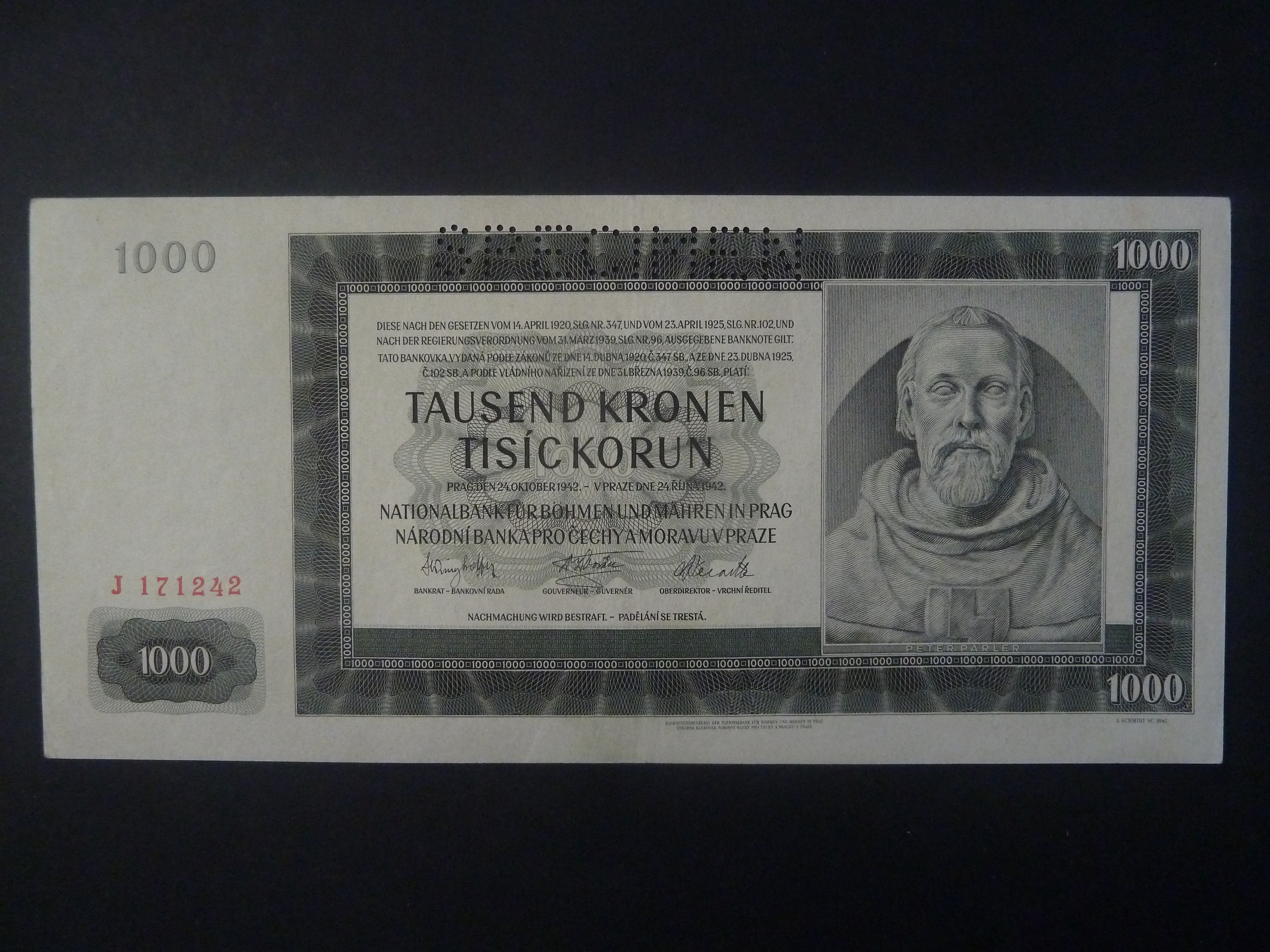 1000 K 1942 série J, I. vydání, perf. SPECIMEN