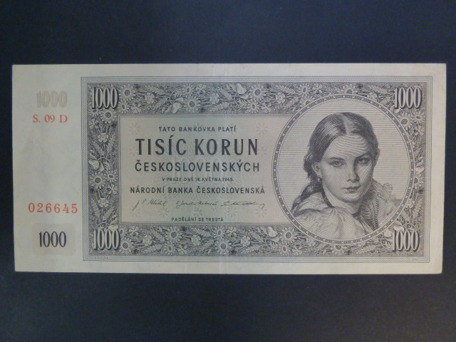 1000 Kčs 1945 série D 09