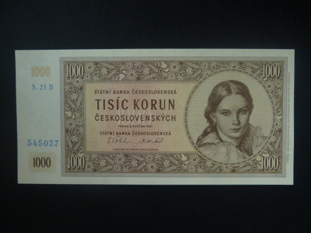1000 Kčs 1951 série 25 B, nevydaná, původní