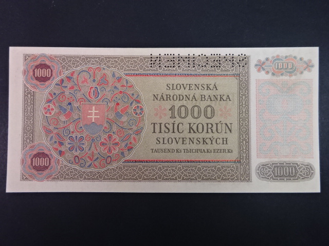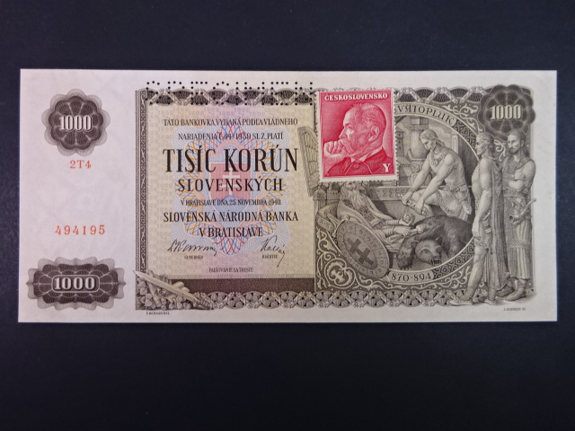 1000 Ks 1940, kolkovaná série 2T4, perf. SPECIMEN nahoře