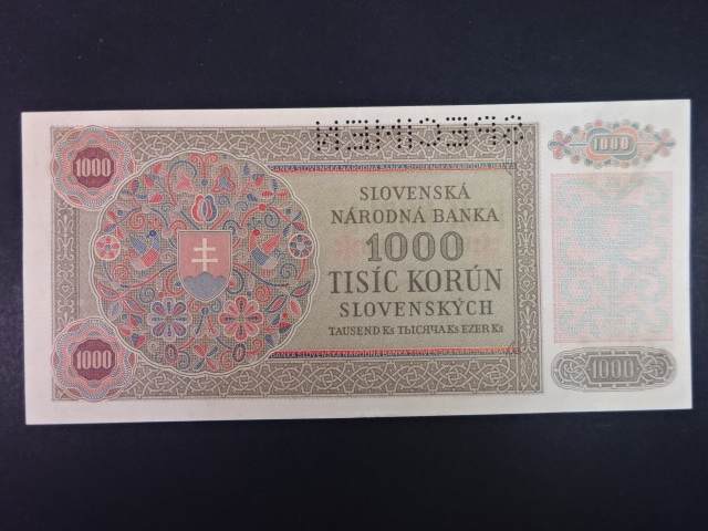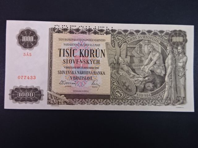 1000 Ks 1940 série 5Á5, perf. SPECIMEN nahoře