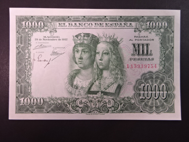 1000 Pesetas 1957, série 1A, BNB. B615a, Pi. 149