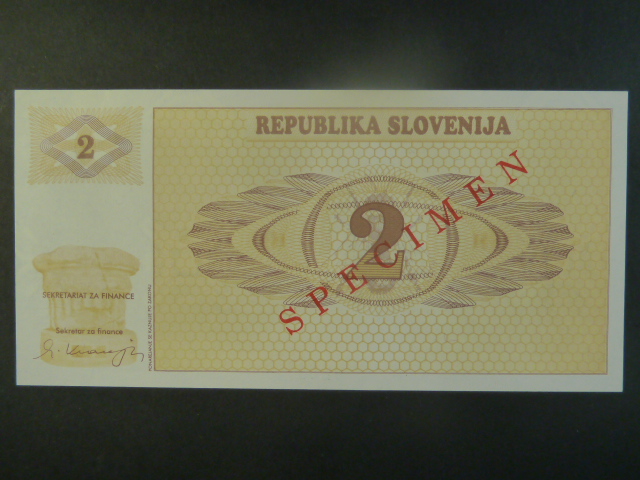 2 Tolarjev 1990, BNB. B202as1, Pi. 2, s přetiskem SPECIMEN, anulát