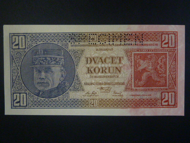 20 Kč 1926 série Chg, perf. SPECIMEN z líce