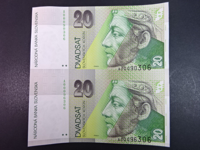 20 Sk 1993 série A, nerozstřižené 2 ks