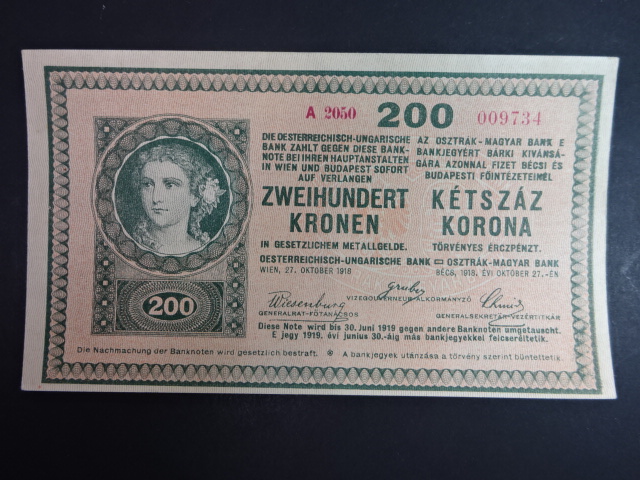 200 K 27.10.1918, serie A 2050 s podtiskem na R, vydání MMR