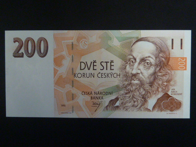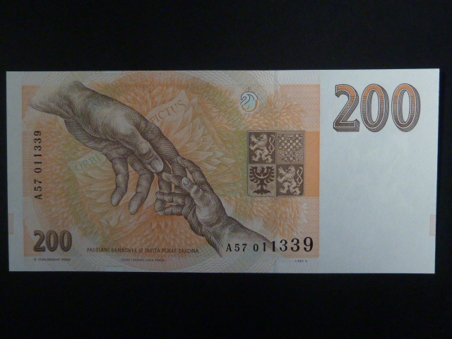 200 Kč 1993 série A 57 proužek Kčs, bílý papír