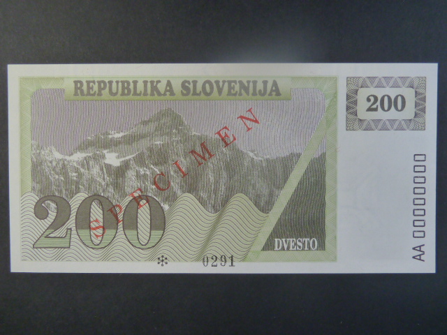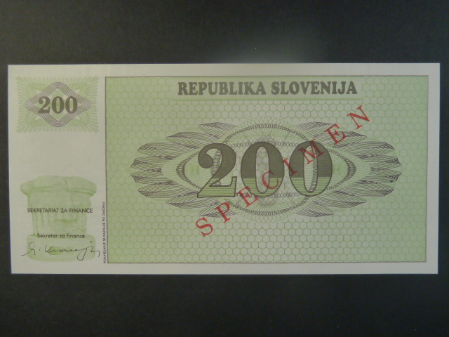 200 Tolarjev 1990, BNB. B207as, Pi. 7, s přetiskem SPECIMEN, anulát