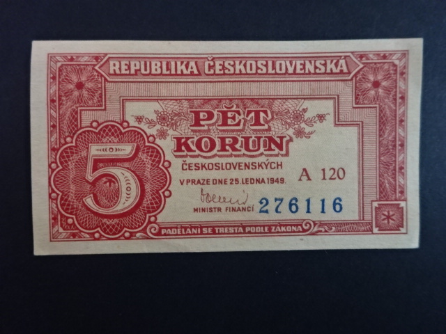 5 Kčs 25.1.1949 série A 118 (NO21441)