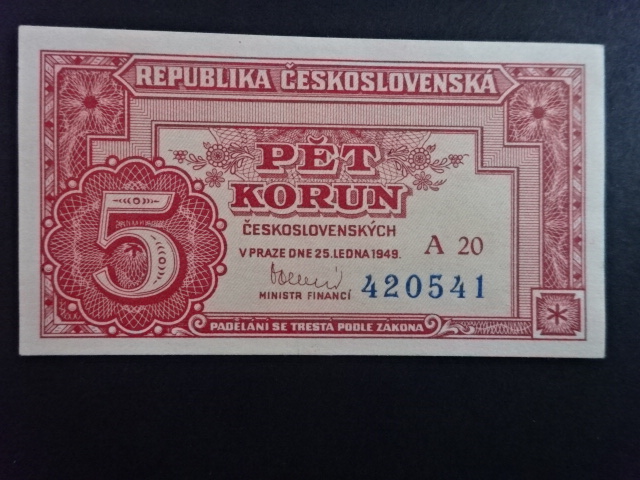 5 Kčs 25.1.1949 série A 19 (NO21408)