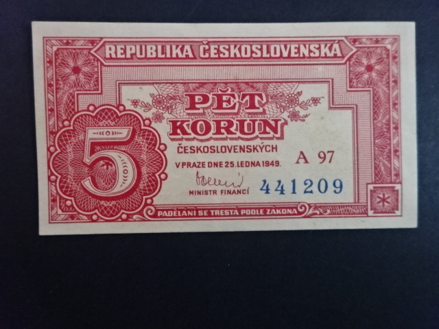 5 Kčs 25.1.1949 série A 91 (NO21433)