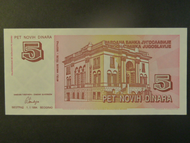 5 novih Dinara 1994, BNB. B480a, Pi. 146
