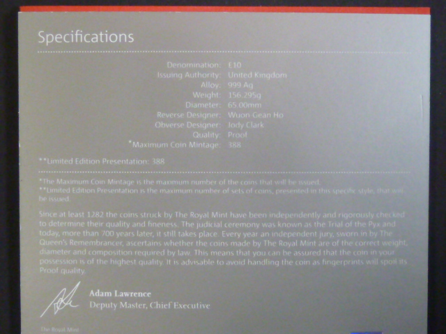 10 Pounds 2017 lunární rok kohouta, 5 OZ Ag 999,9, 156,295g, náklad 388 ks, certifikát, etue