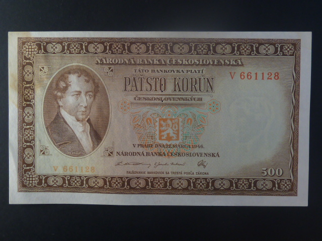 500 Kčs 1946 série V, perf. "3md" nad sebou