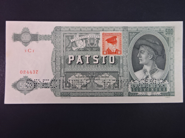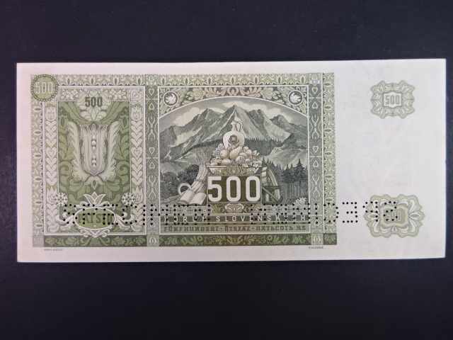 500 Ks 1941 kolkovaná série 3Cf, 2x perf. SPECIMEN dole