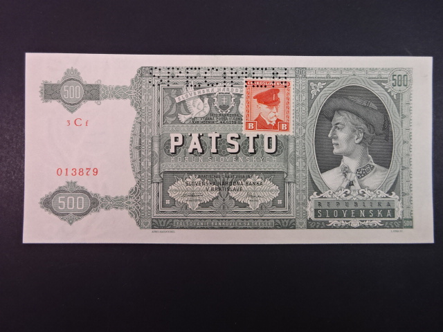 500 Ks 1941 kolkovaná série 3Cf, perf. SPECIMEN nahoře