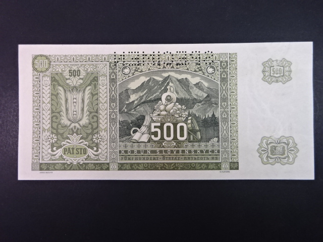 500 Ks 1941 kolkovaná série 6Zr, perf. SPECIMEN nahoře
