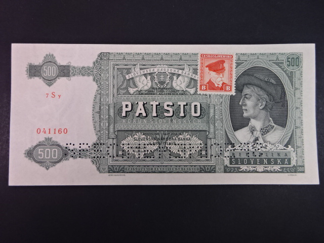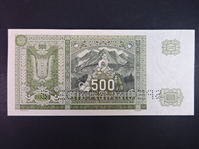 500 Ks 1941 kolkovaná série 7Sy, 2x perf. SPECIMEN dole
